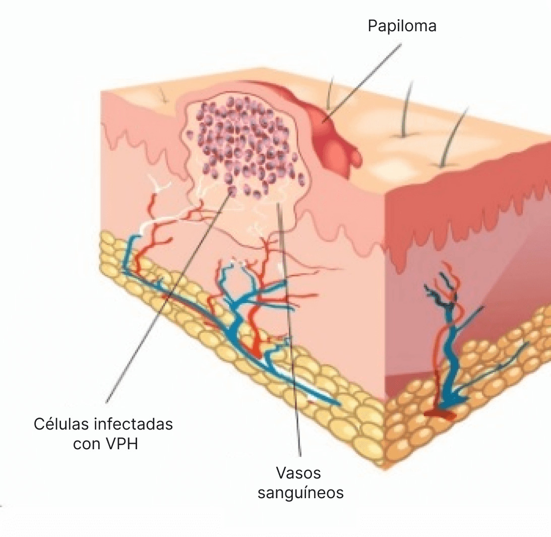 1. Infección por VPH. El proceso comienza cuando el cuerpo se infecta con el virus del papiloma humano. Esto puede ocurrir a través del contacto con la piel o el revestimiento infectados, por ejemplo, durante el contacto cercano con una persona infectada o a través de lesiones menores en la piel.
